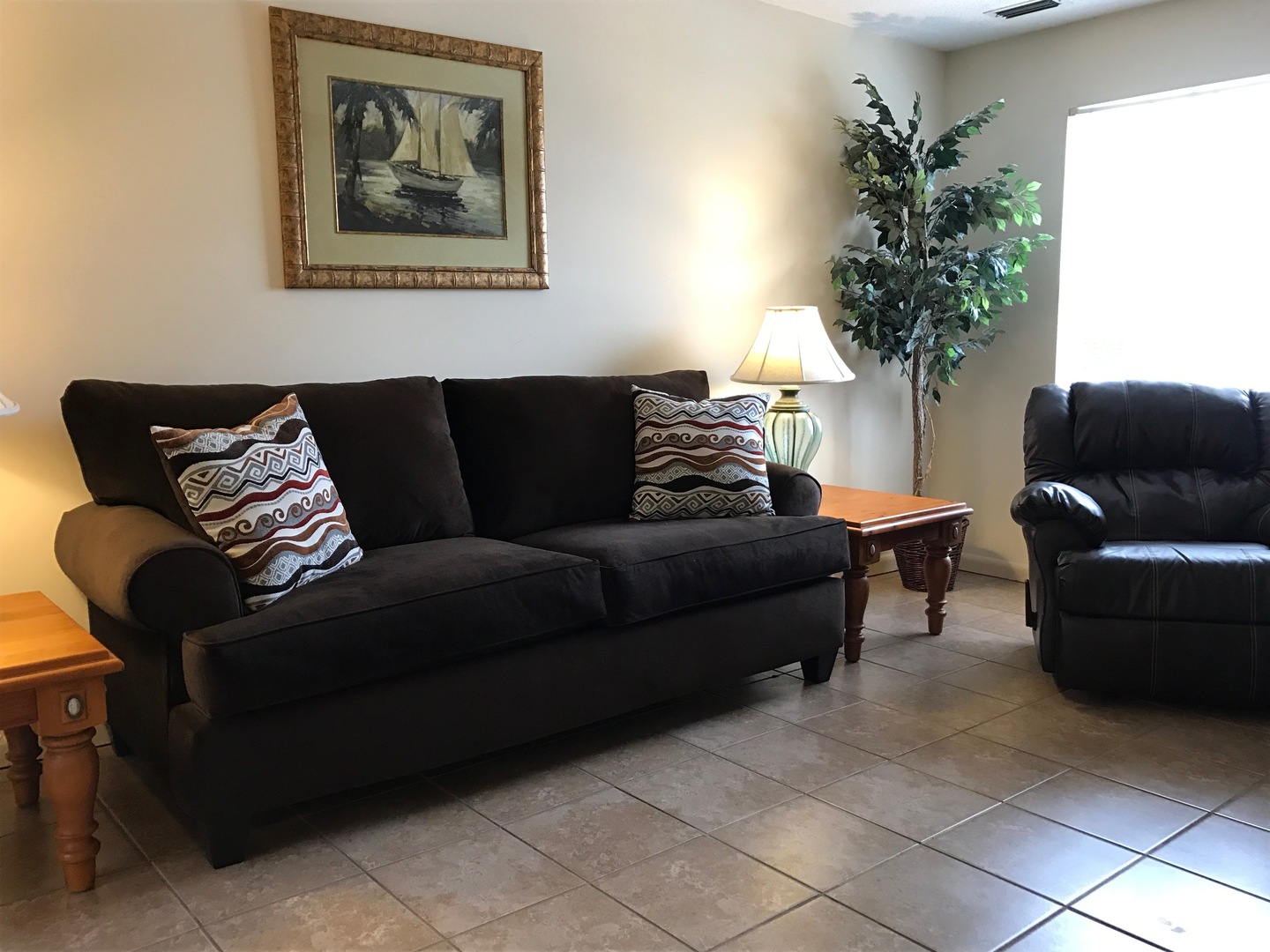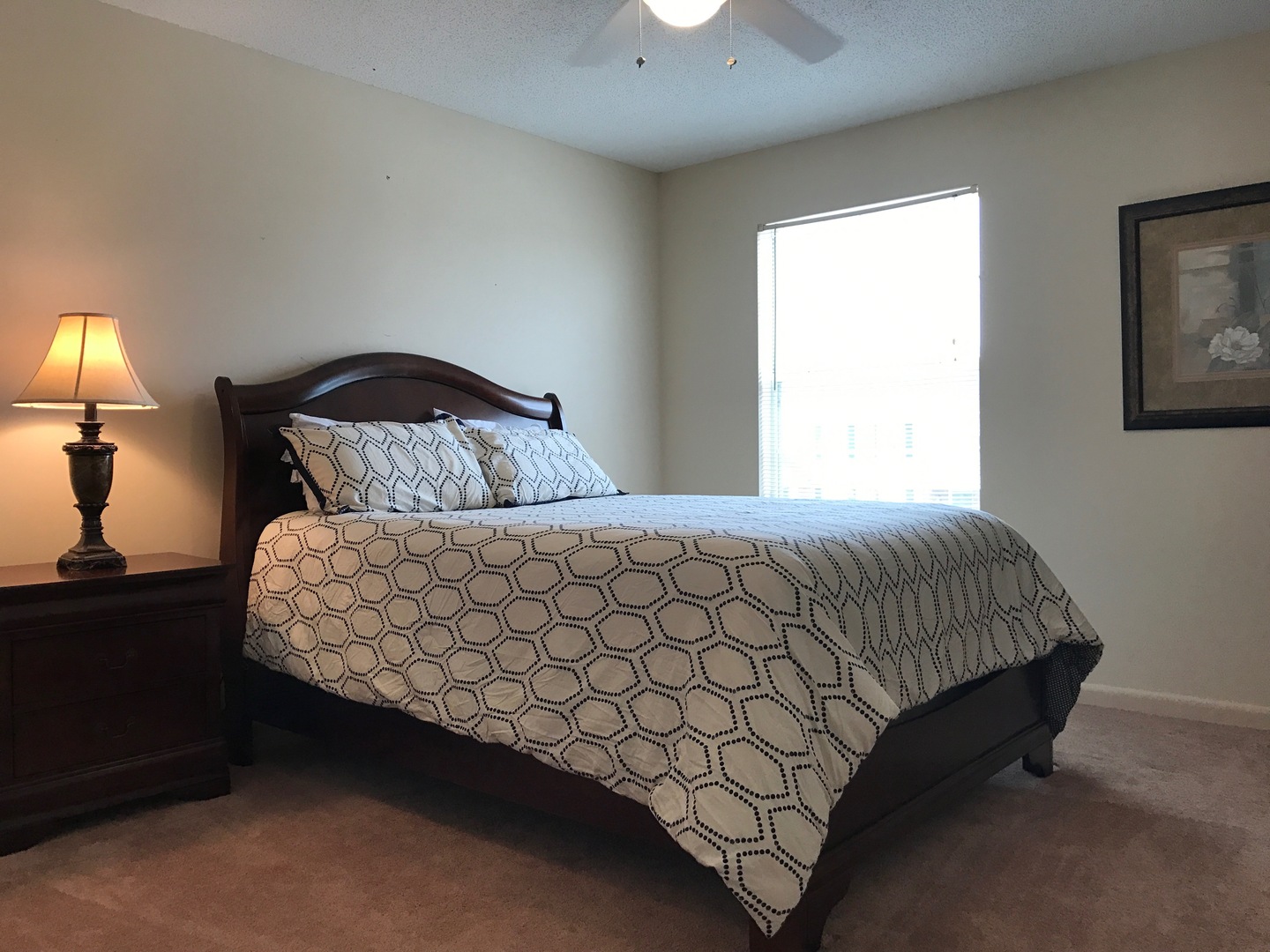Welcome to 40 Carriage Lane Apt. 5, a beautifully furnished two-bedroom apartment located in the heart of Oxford, AL. This apartment boasts 1.5 bathrooms, each adorned with sleek ceramic tiles. The bedrooms are spacious, each equipped with ceiling fans and his & her closets for ample storage. The living space is enhanced by upgraded carpeting and mini blinds on all windows, ensuring privacy and comfort. The kitchen is a chef's dream, fitted with sleek white appliances that add a modern touch. A full-size washer and dryer are included for your convenience. Step outside to your private patio, a perfect spot for relaxation or entertaining. One of the standout features of this apartment is its walking access to Oxford Lake, offering a scenic view and a chance to connect with nature. Experience the perfect blend of comfort, style, and convenience at 40 Carriage Lane Apt. 5.